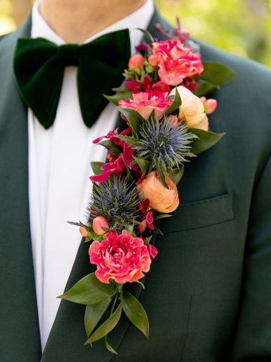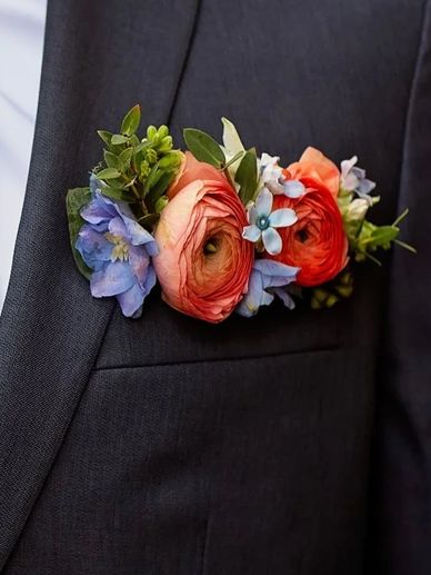 A modern take on the classic boutonnière—featuring fresh blooms arranged with a natural, effortless feel. Each piece is handcrafted using seasonal flowers for a look that’s both refined and a little wild.